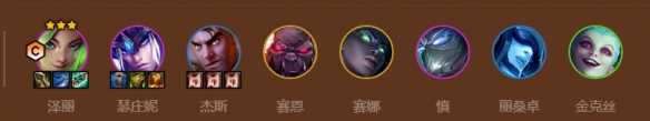站位方面就是低排基克要给到杰斯,因为杰斯技能也可以给队友加攻速,前排就用猪妹去对位控制对面关键卡,遇到潜行者要注意对位。
