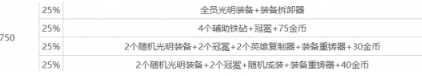 14、750级:供给金币、铁砧、轻装、五费棋子、复制器等道具。