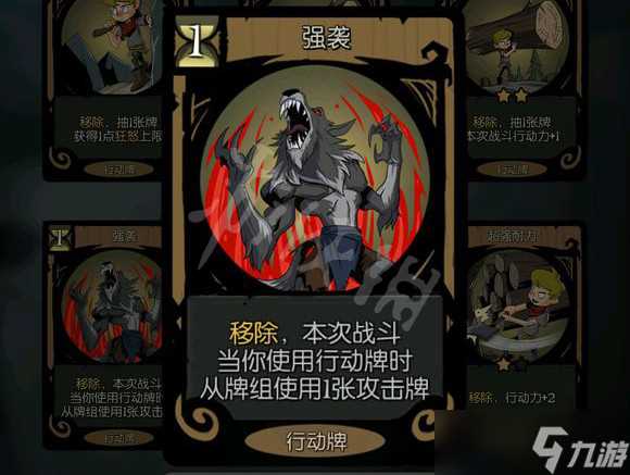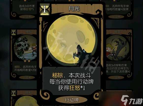 狂怒流的操作流程:基本上就是危机,月光起手,复制位给月光增加输出来源,用掉大部分行动卡,得到很多攻击卡,全部压抑掉,可以得到20左右行动力并且抽完牌库,用掉剩余行动卡,再用异变刷频率,20多点行动力足够刷死狼王了,不够的话,还有一张底牌叫恢复理智,可以补充狂怒上限的行动力,再刷一轮。