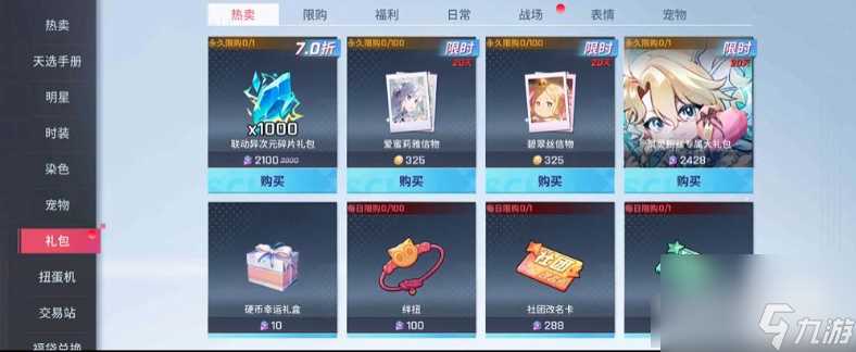 1.①大家找到礼包购买爱蜜莉雅的信物,买100个。