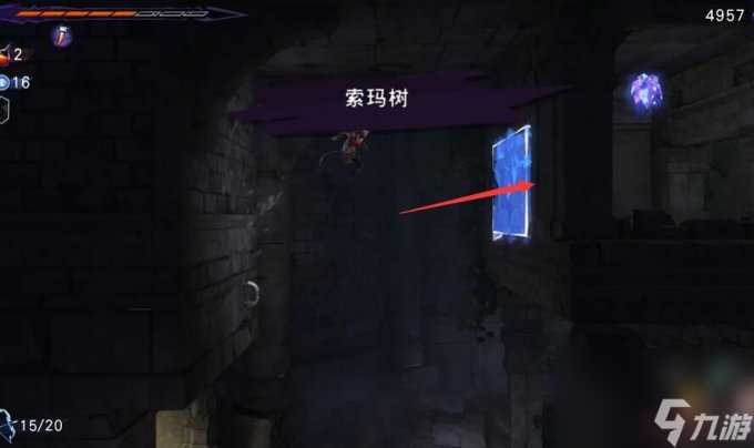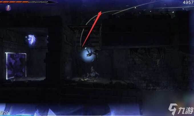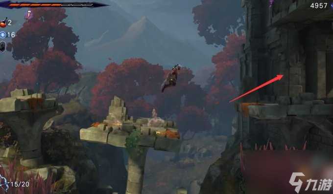 3.攀爬岩壁,跳跃穿过墙壁,沿箭头方向前进。