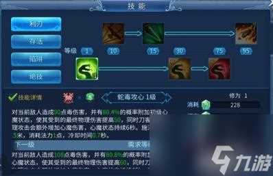描述: 对单一目标造成毒性伤害,并有机会种下一颗心魔,心魔状态下的物理攻击将受到重创。