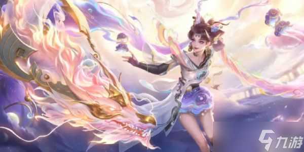 在形象设计方面,孙尚香的特点得到了保留比如双马尾还有武器,不过武器变成了一条龙而且在局内也是能够展示出来的。出场动作是孙尚香和龙一起飞行,整体的设计非常华丽,而且这个色彩给人一种非常丰富的感觉,龙元素特别突出。