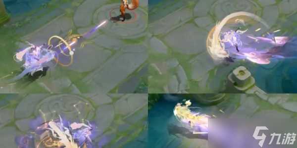 3、大招特效:大招释放之后是直接一条飞龙向前冲击,当命中目标或者是最远距离的时候会出现辰龙之门,然后还有一条龙会在门中怀绕。