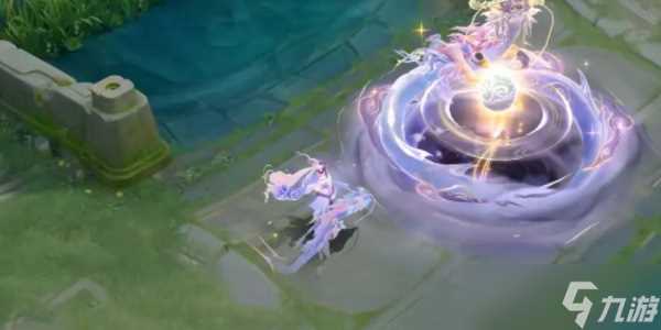 2、二技能特效:二技能的效果也非常霸气,释放之后在地面上会出现一个漩涡形状的特效,然后有一条龙在其中环绕,中间还有一颗珠子。