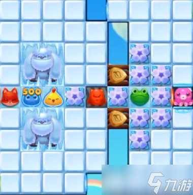 4、消除金花之后,逐渐的通过魔法石的移动来消除两侧位置的冰块,在消除的时候,还可以利用独眼仔制作出特效。