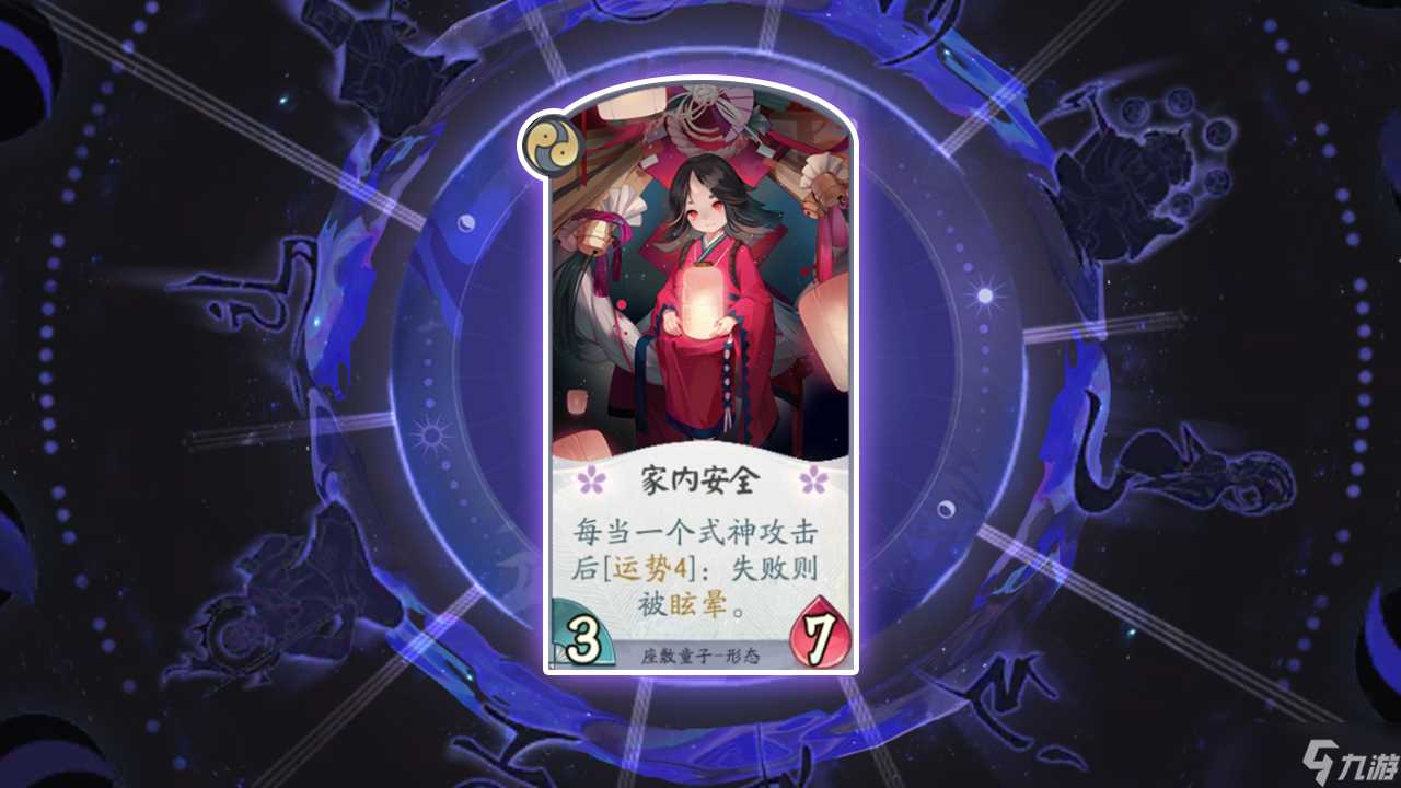 卡牌作用:增加的生命可以保证座敷童子的存活。觉醒的效果可以将运势判定的成功率变大,此效果同样适用于己方其他与运势相关的式神,比如青蛙瓷器和山兔。