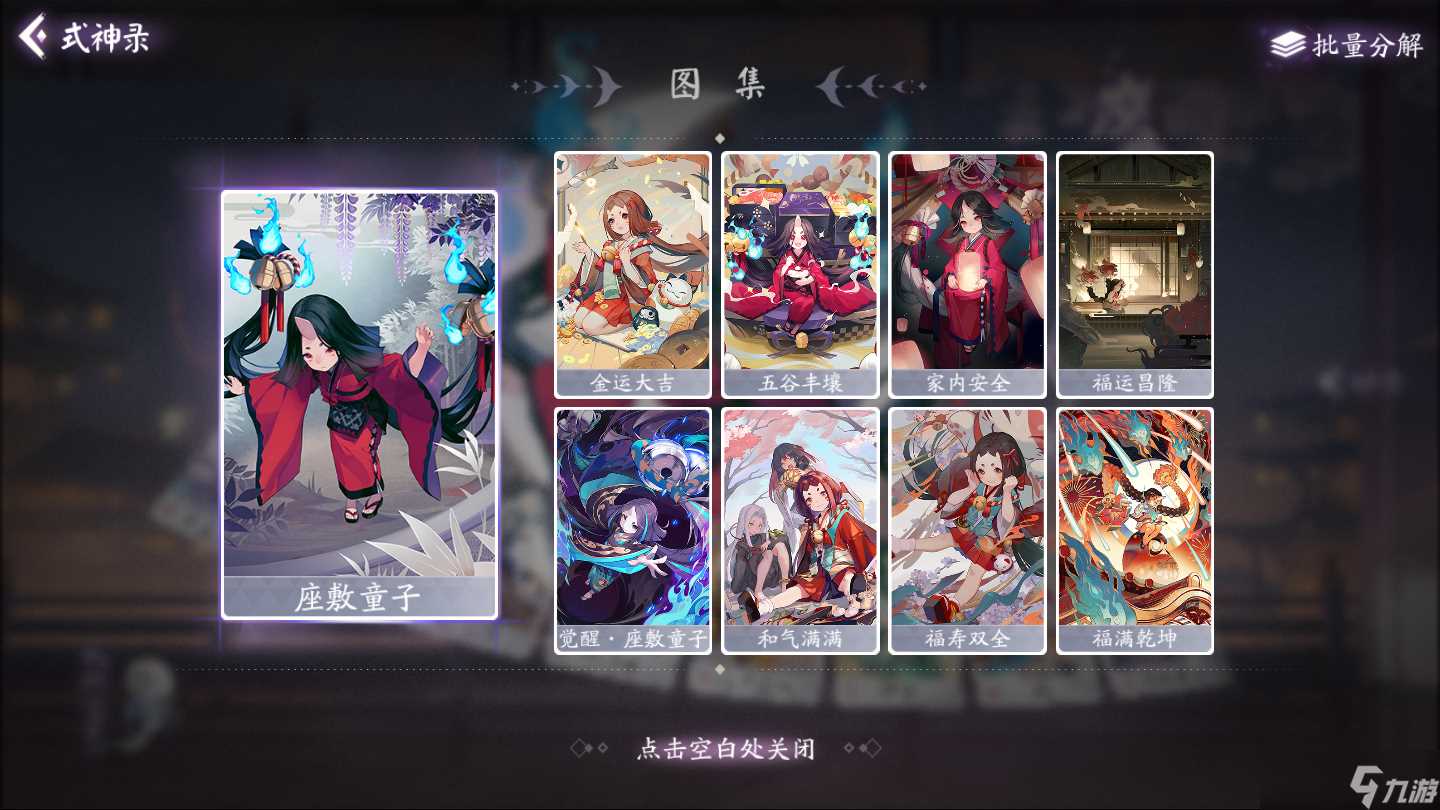 建议卡牌组合:金运大吉x1 五谷丰壤x1 福满乾坤x1 家内安全x1 福运昌隆x2 觉醒·座敷童子x1 和气满满x1