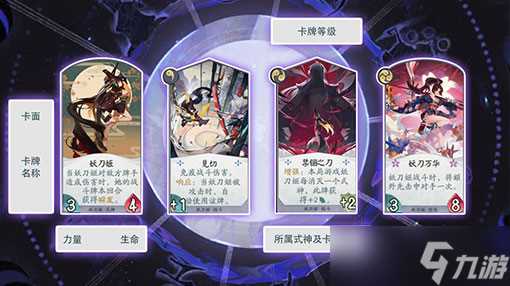 3、按出牌需求升级式神;在一场对局中,牌桌上的局面都是多变的,我们需要根据下一步的出牌需求来升级式神,尽量满足我方的出牌需求。例如你有一大半手牌都是妖刀姬的卡牌,但是己方式神血量都岌岌可危,下一步你需要使用海坊主的“祝福之水”,给全员治疗,那么在升级时,肯定是要先升级海坊主而不是妖刀姬。总之按出牌需求给式神升级,才能在灵活多变的对局中游刃有余。