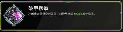 该build借助拳四冲刺特攻后会给敌人挂上致残debuff的特性,且使用冲刺特攻的同时,给敌人挂上爱神和酒神的debuff,触发尚方宝剑。然后围着敌人绕圈并使用冲刺攻击,击穿护甲造成伤害。