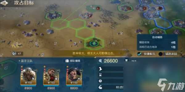 10格以内有我方地块,可以让队伍不耗体力地自动铺路过去,还会自动放弃铺路过程中占领的路径地块