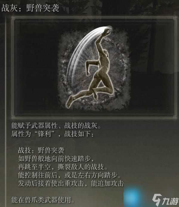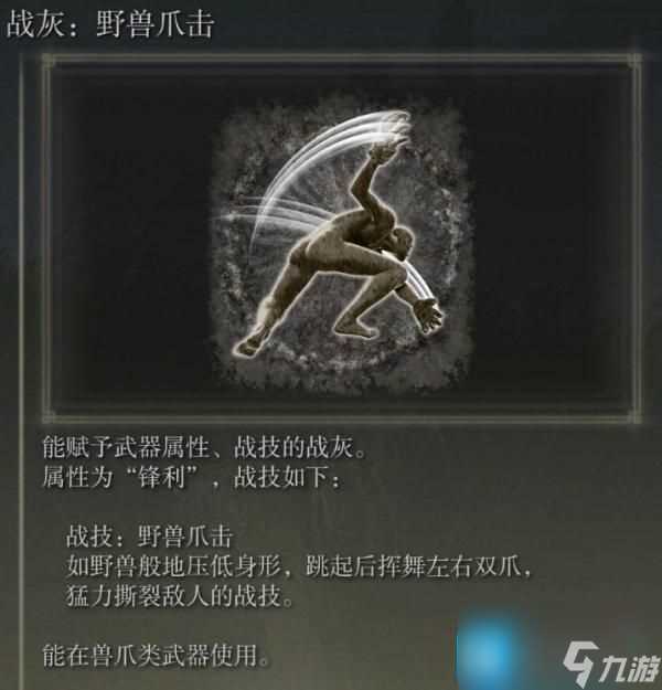 艾尔登法环野兽爪击在墓地平原,从赐福墓地平原出发,往下方走,与敌对NPC战斗并获得可以获得野兽爪,从上面拆下战灰即可获得。