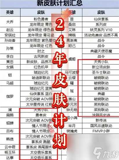 我最近看到了一个非常有趣的图片,那就是关于王者荣耀24年,部分皮肤制作计划。