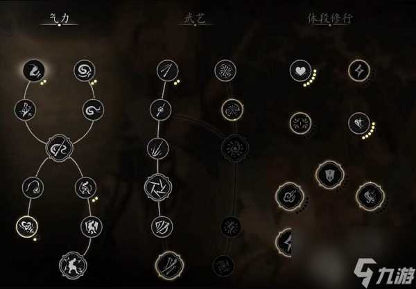 根基:乃天命人安身立命之本,在升级后选择对应的分支进阶修炼。包含三类:气力、武艺、体段修行。根基可于土地庙处整备调配。参悟需要消耗灵光点。