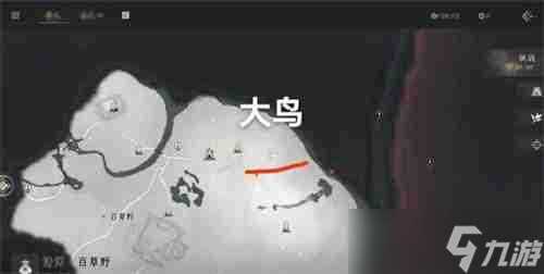 3、至下图标注之点,在峭壁旁会见到一只巨大的白鸟,利用弓箭对其进行射击。