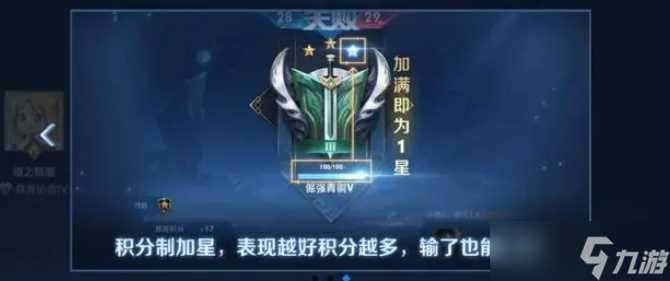 新的积分加星制,将每一星拆分为100积分,可以根据对局中的实际表现,增加或者扣除不等的积分,让努力与收获正相关。
