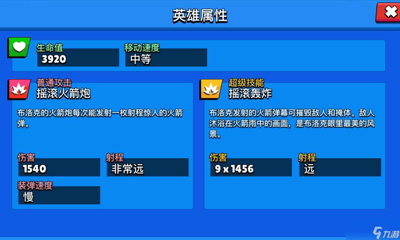 布洛克是荒野乱斗射程最远的英雄之一,他的超级技能能够对指定范围内进行地毯式轰炸,敌人走位稍有不慎便可能惨遭团灭。