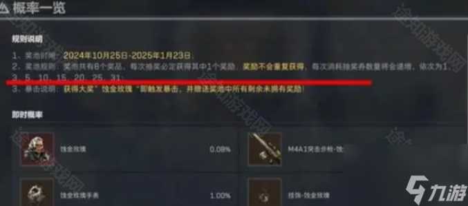 获得角色外观—饰金玫瑰时会一次性获得奖池中的所有道具