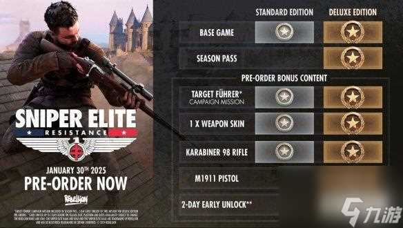 《狙击精英:抵抗》官方公开了发售日预告,并宣布该作将于2025年1月30日正式发售,登陆PS5、PS4、XSX丨S、Xbox One、PC(Steam、Epic、Windows)平台,支持XGP。