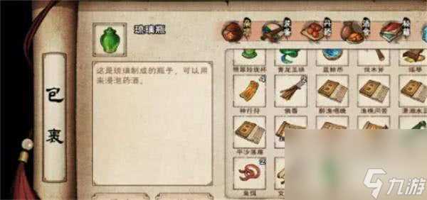 6、浸泡时间达到要求后,在包袱中点击琉璃瓶,再点击取得药酒即可。