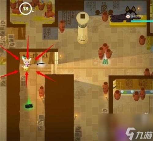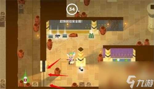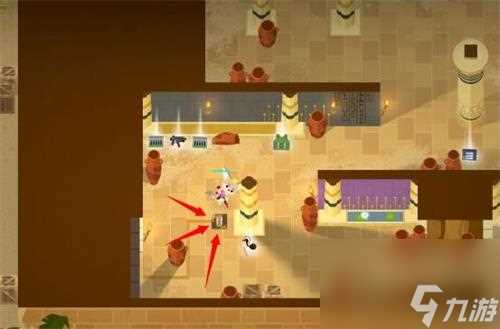 我们进入密室通道沿着去寻找下一个开关,第二个开关就在密室的尽头,我站立的位置从上面走也可以不过比较远